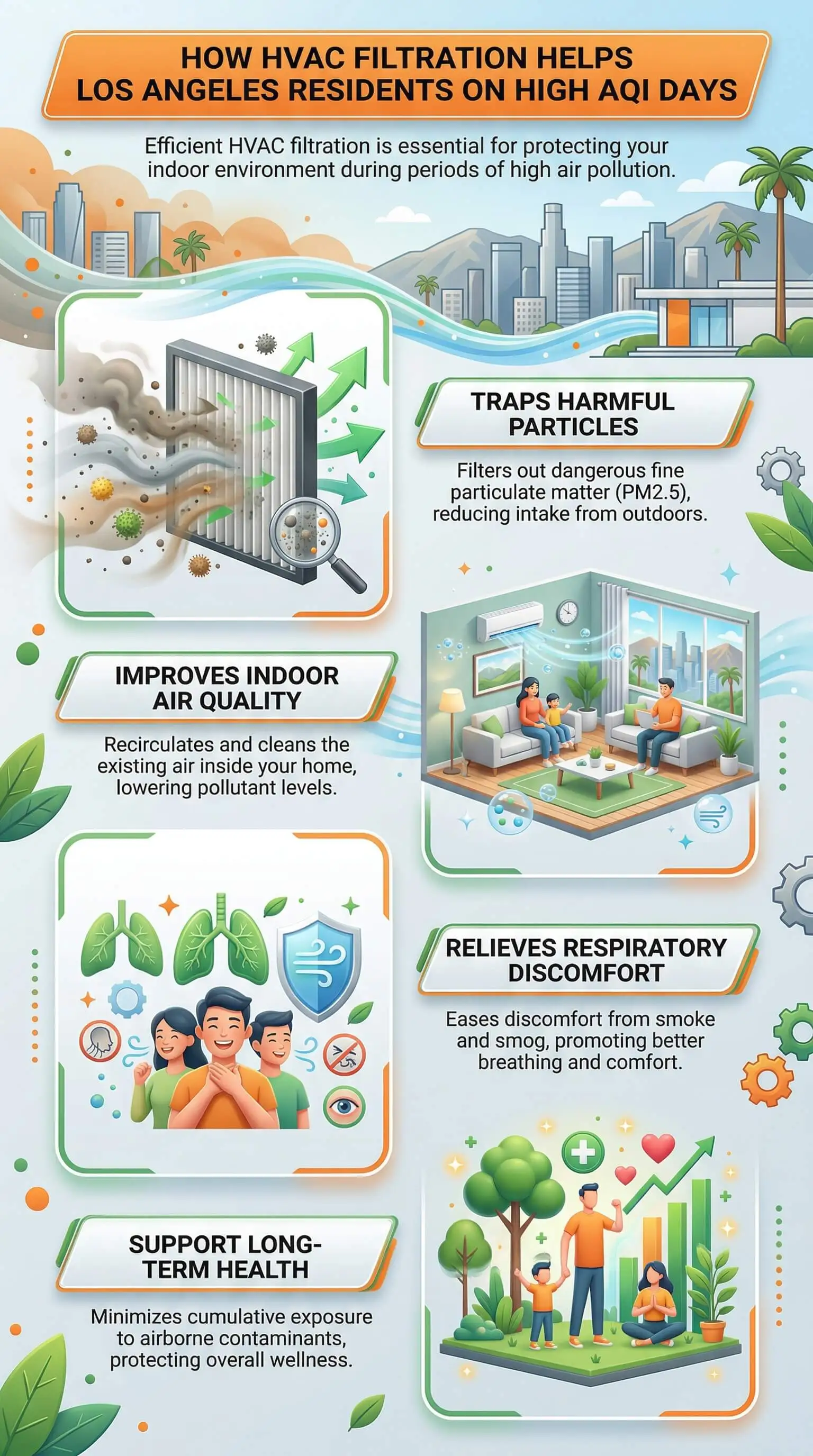 High AQI days in Los Angeles don't just affect the air outside — they pressure-test everything standing between your family and that air. When the AQI crosses into the Unhealthy range, outdoor PM2.5 concentrations rise sharply. Your HVAC system cycles on, draws air through the return ducts, and passes it across your filter. What that filter captures — and what it lets through — determines the air quality inside your home.