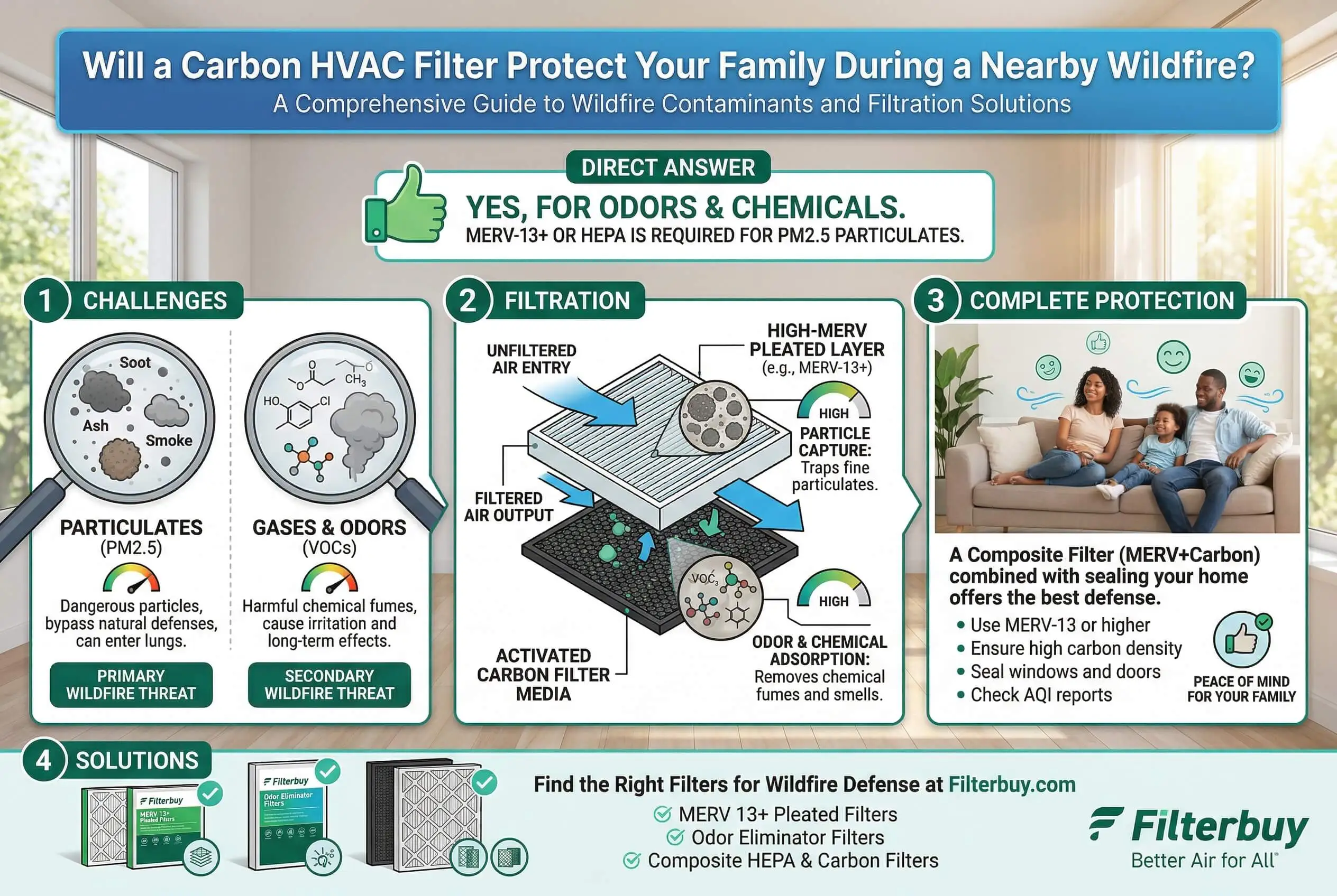 Is Your Home's HVAC Filter Ready for Wildfire Season? Shop Filterbuy's MERV 13 Carbon Filters and Get the Complete Wildfire Protection Your Family Deserves.